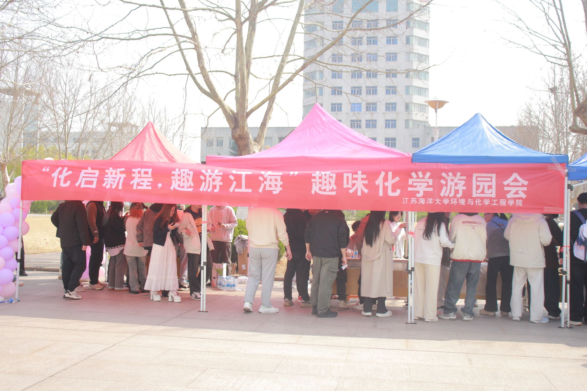 为激发学生探索热情,让化学知识走出课本,3月25日,“化启新程,趣游江海” 趣味化学游园会在文通楼南广场如期举办,活动吸引了全校众多师生参与,现场氛围热烈有序。