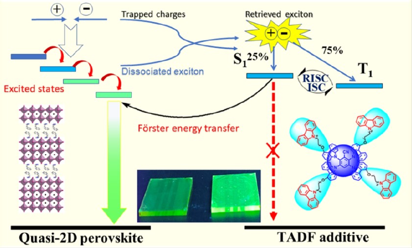 TADF添加剂和准二维钙钛矿器件之间的能量传递图