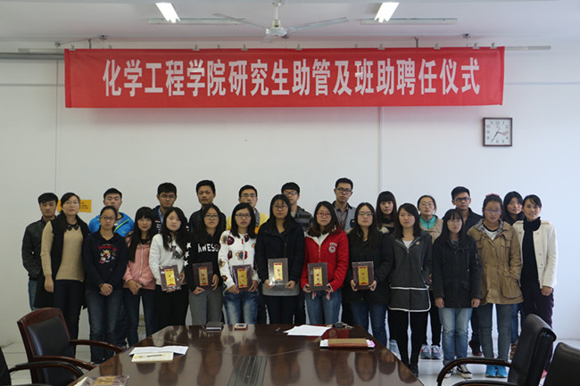 11月4日下午3点,化学工程学院在主楼1006会议室举行化学工程学院研究生助管及班助聘任仪式。化学工程学院党委副书记王改红老师、化学工程研究生教务秘书贾海虹老师、8名被聘为研究生助管及2013级班主任助理的研究生以及2013级的各班骨干参加了聘任仪式。