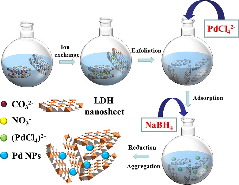 Pd@MgAl-LDH复合材料的制备示意图