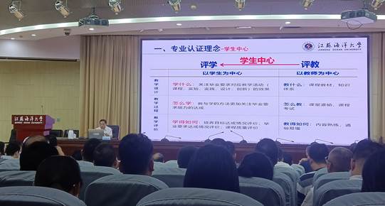 为全面贯彻落实OBE人才培养理念和全面发展质量观,深化人才培养模式、课堂教学模式和课程考核评价方式改革,帮助教师深刻理解OBE理念及内涵,促进学校课程、专业建设,推动审核评估评建工作,9月14日下午学校在会议中心黄海厅举办了“基于OBE的教学设计与评价”的专题报告会。报告会由马廷淮副校长主持,教育部高等学校测绘类专业教学指导委员会委员、中国工程教育专业认证协会测绘地理信息类认证委员会委员、教育部专业认证核心专家焦明连主讲。我院教学副院长、系主任、专业负责人及教师代表共20余人参加了本次培训。