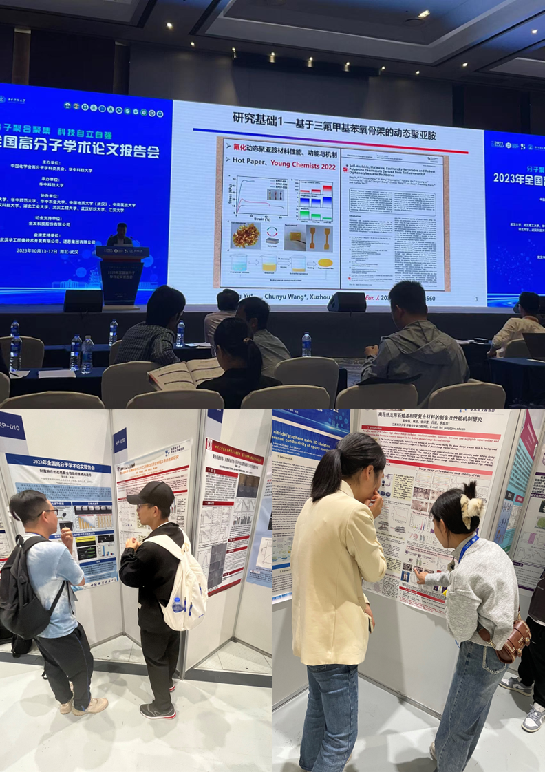 2023年全国高分子学术论文报告会于10月13-17日在武汉举行,大会由中国化学会高分子学科委员会和华中科技大学共同主办,华中科技大学承办,来自全国各地的6000余人参加了此次大会,其中有两院院士24人,长江学者、杰青、国家高层次人才计划专家200余人。会议共有大会报告8个,邀请报告422个,口头报告495个,快闪报告294个。我院青年教师宇平博士,研究生郭俊瑕、韩旭、王海跃和李柏江参加了本次会议。