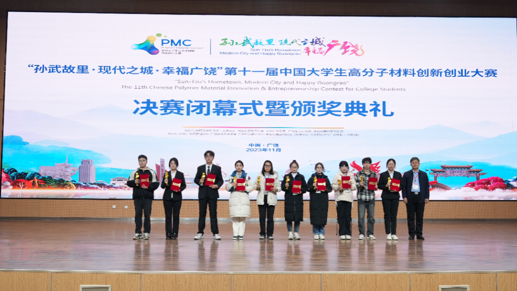 11月14日,由中国石油和化学工业联合会、中国化工教育协会、中共广饶县人民政府和橡胶谷集团有限公司联合主办的第十一届中国大学生高分子材料创新创业大赛(PMC大赛)在东营市广饶县举行。本届PMC大赛参赛作品限定在橡胶、塑料、涂料、胶黏剂、纤维、功能材料领域,初赛阶段吸引了包括山东大学、青岛科技大学、四川大学、江南大学、常州大学在内的全国28个省市自治区191所高校的711支团队报名参赛,经过评审遴选,共60个优秀项目最终入围决赛。其中,我院由徐沛宽、吕进、郭俊瑕、侯德旺、孙叶组成的“清润卫士”团队入围决赛。