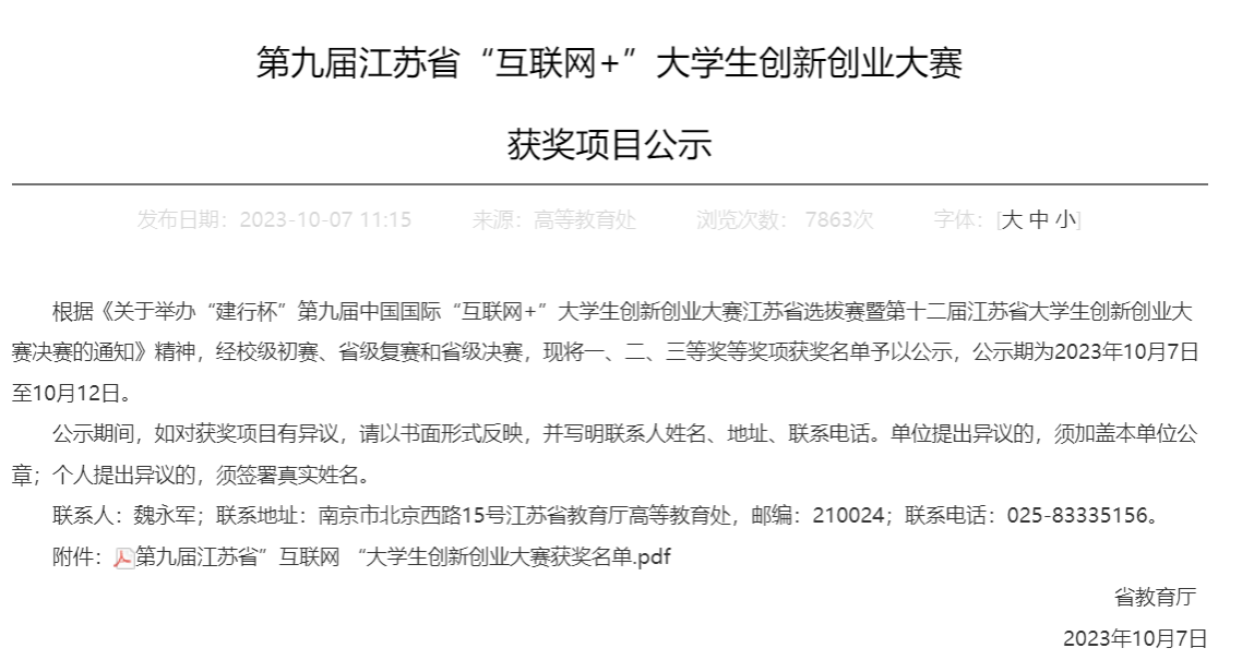中国国际“互联网+”大学生创新创业大赛是由教育部等多部委和地方人民政府共同主办的最具影响力的创新创业顶级赛事,也是规模最大、形式最新、最为生动的思政大课堂,已经成为深化高校创新创业教育改革、促进高校学生全面发展的重要平台。第九届中国国际“互联网+”大学生创新创业大赛江苏省赛由省教育厅联合省委统战部等13个部门共同举办,共吸引省内143所高校的15.5万支团队参赛,报名参赛人次达50.6万。