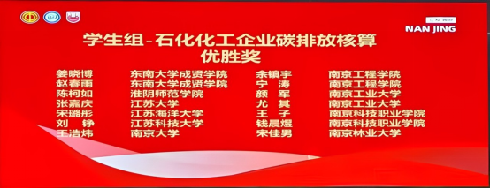2024年11月30日,由江苏省人力资源和社会保障厅、江苏省总工会、中国石油和化学工业联合会指导,江苏省机冶石化工会、江苏省能源行业协会联合主办,南京工业大学承办的江苏省碳排放管理员职业技能竞赛完美落幕。我院化学工程与工艺专业学生张治瑞获二等奖,宋璐彤获优胜奖。